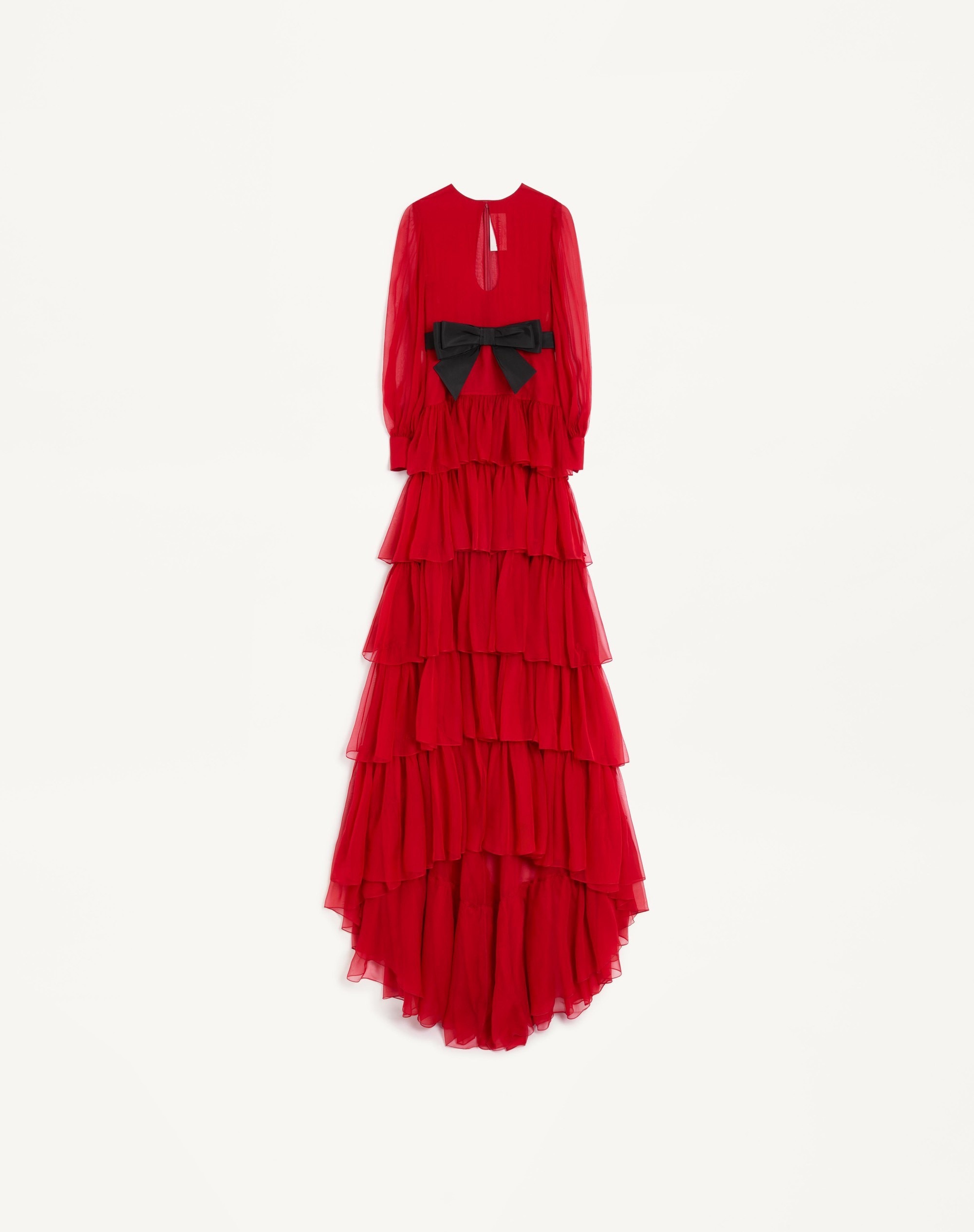 At the heart of Valentino’s identity is its unmistakable red—“Valentino Red.” First debuted in the 1960s, this crimson hue, between carmine and scarlet, radiates vitality and elegance in equal measure. It is not just a color, but a statement of presence—a bold declaration that femininity is not to be hidden but to be seen. From Jacqueline Kennedy’s wedding dress to countless couture moments on red carpets, Valentino Red has become a cultural code, signaling confidence, beauty, and permanence.