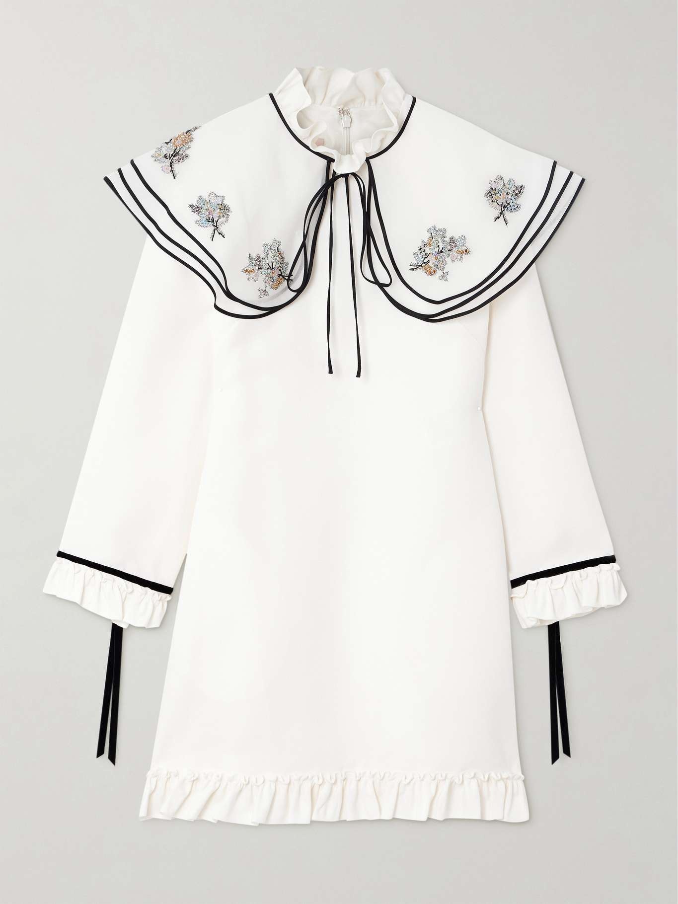 2. Valentino Embellished cape-effect ruffled wool and silk-blend crepe mini dress White