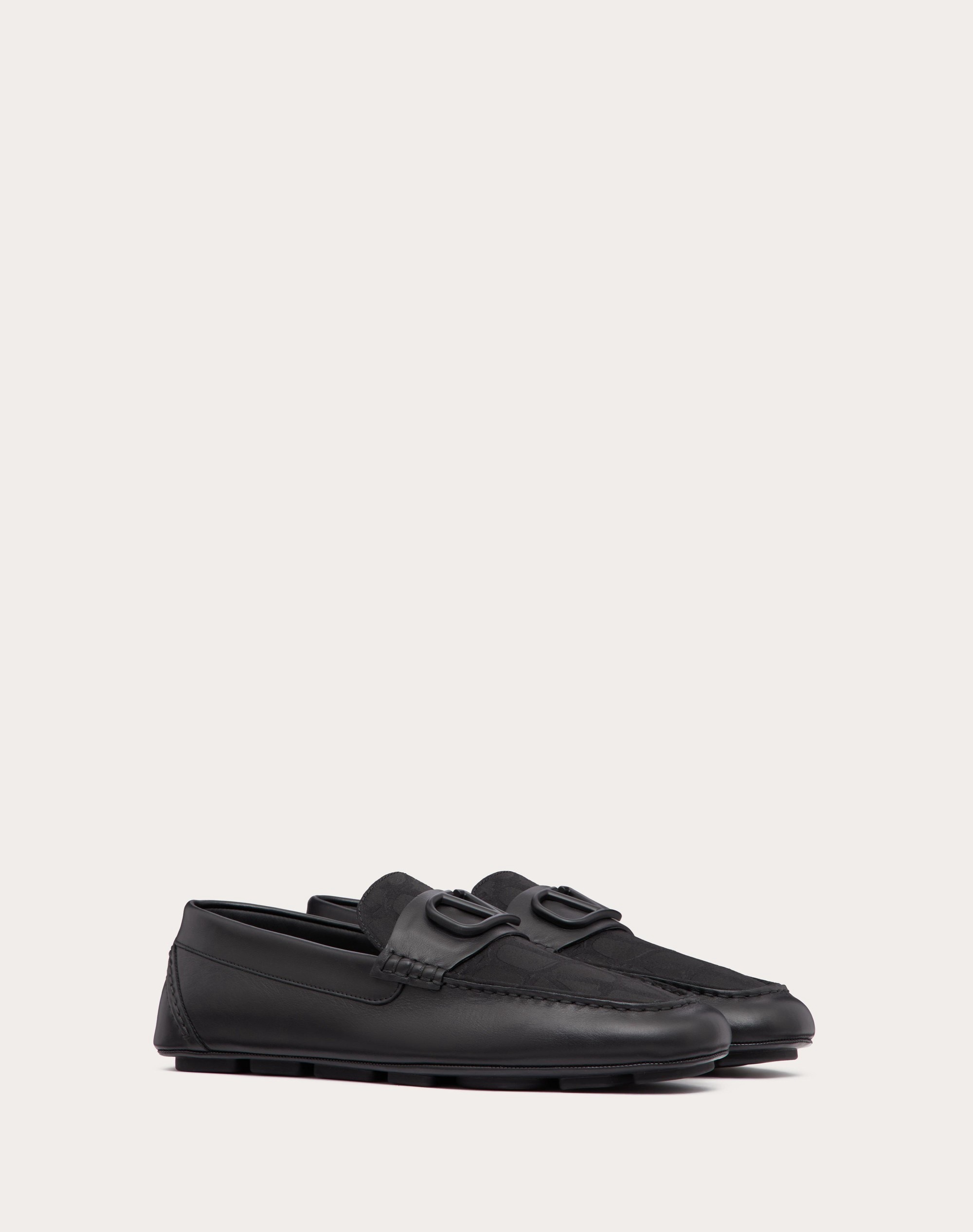 4. Valentino VLogo SIGNATURE DRIVING SHOE IN CALFSKIN AND TOILE ICONOGRAPHE TECHNICAL FABRIC