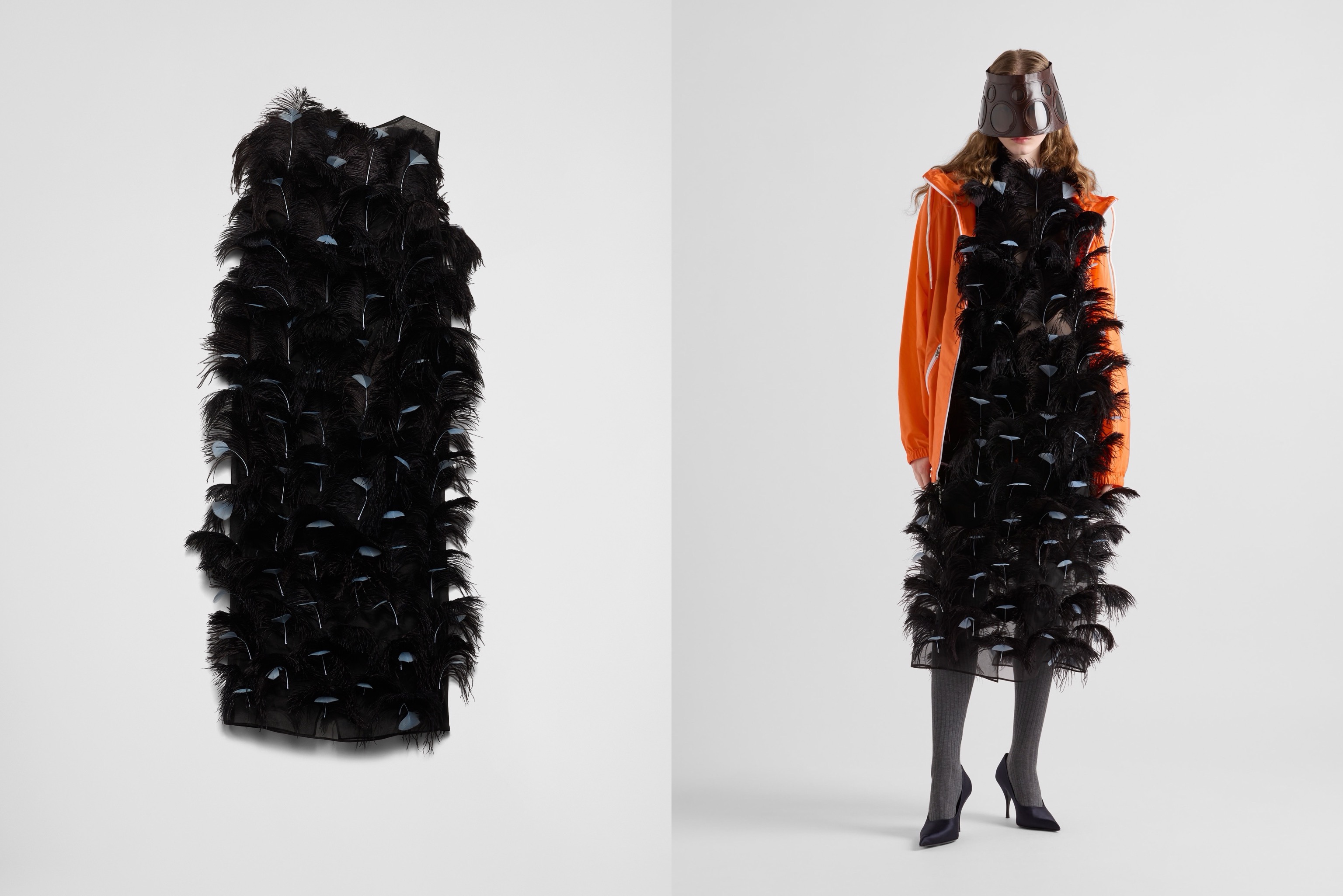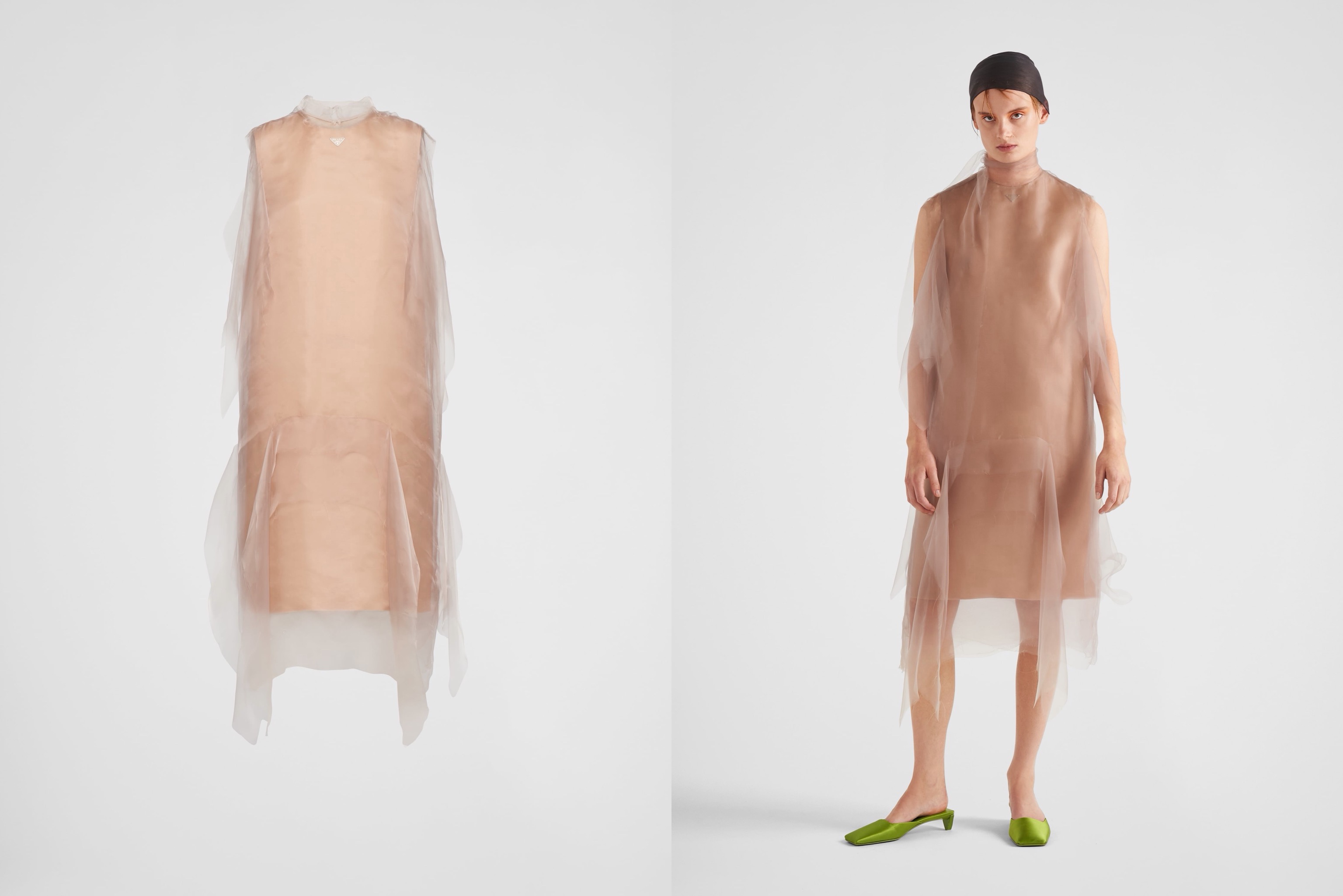 SS21 introduced the first co-directed collection by Miuccia Prada and Raf Simons. Presented digitally, it featured experimental silhouettes and symbolic prints, reflecting a shared vision for the future of fashion.