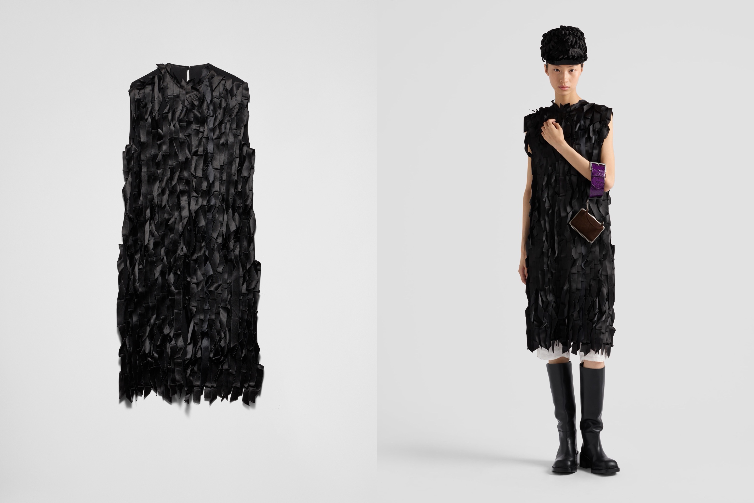 SS25 continues the focus on sustainability and futurism. Building on Re-Nylon, it highlights eco-conscious materials and minimalist futurist silhouettes, merging luxury with social responsibility.