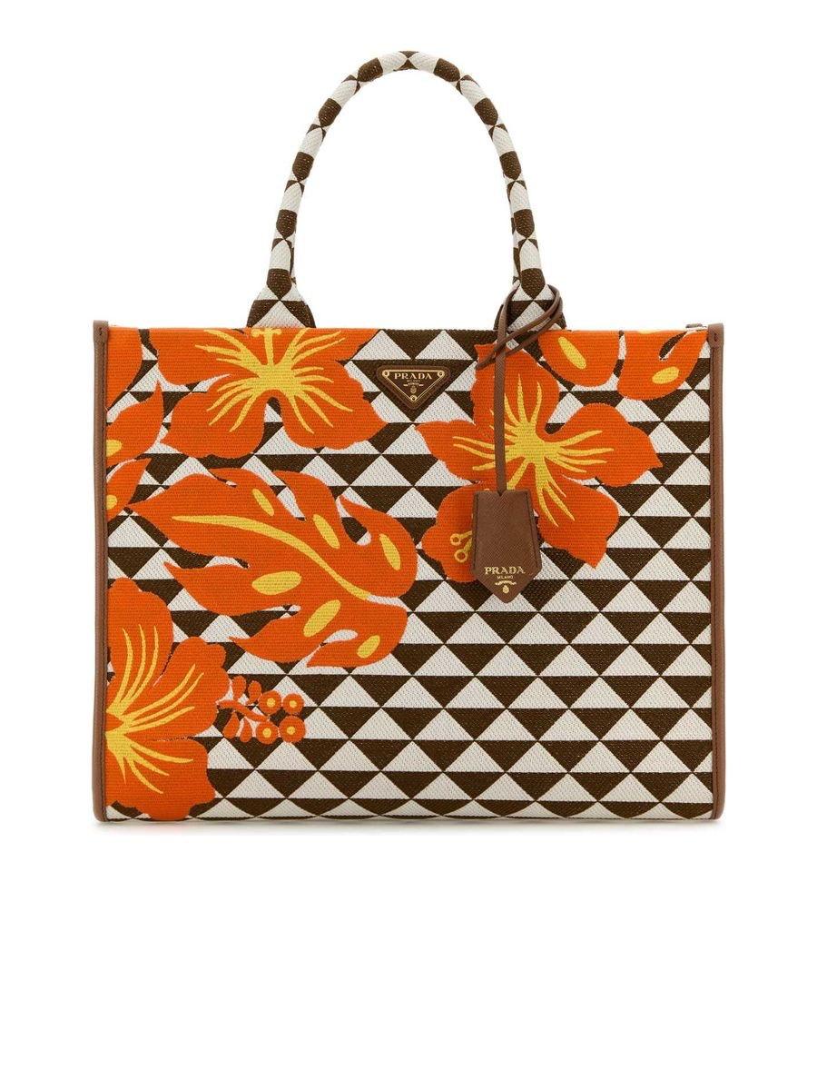 3.Prada Large Prada Symbole embroidered fabric handbag