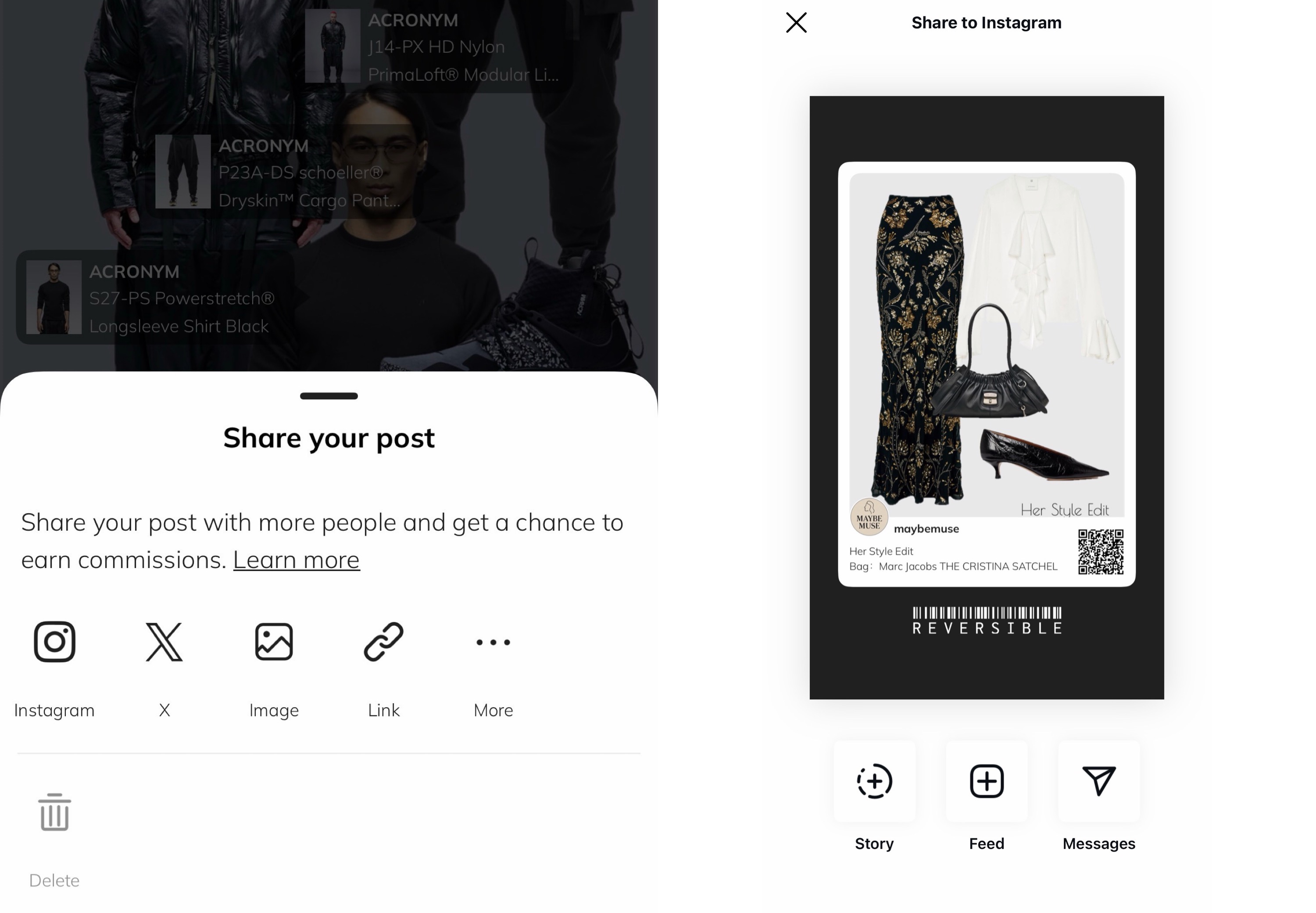 Creators tag products directly within their content using REVERSIBLE’s dynamic multi-retailer catalog. Each tag instantly becomes a unified reference linking to a global assortment of brands — from luxury houses to emerging labels, and from major department stores to niche boutiques.