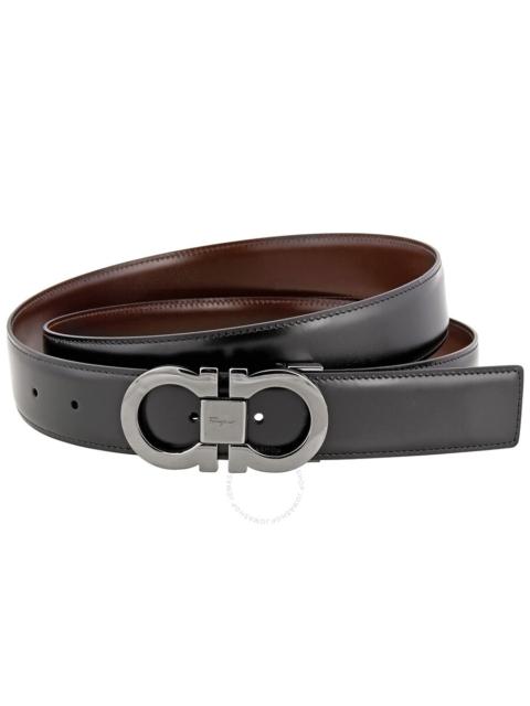 Ferragamo Reversible and Adjustable Gancini Belt- Black/ Brown