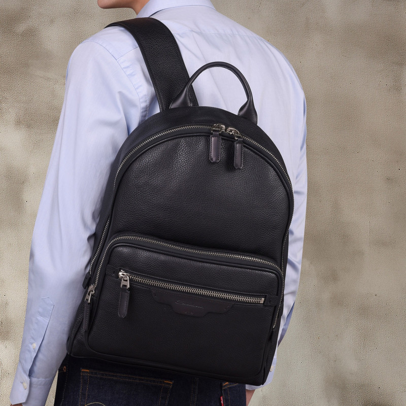 Black tumbled leather backpack