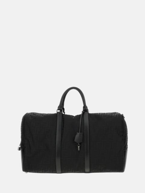 Bottega Veneta Men Black Travel Bag With Intrecciato Motif And Shoulder Strap In Leather Man