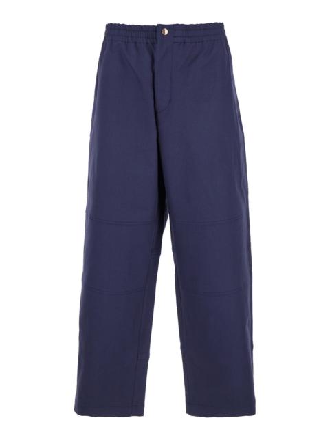 Moncler Genius Men Blue Pants With Elastic Waist And Logo Patch On The Rear In Cotton Stretch Man