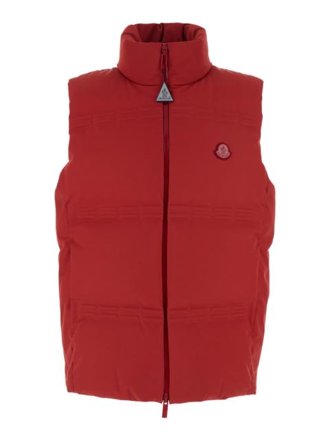 Moncler Genius Men 'Sparky' Red Sleeveless Down Jacket With Slogan Print On The Collar And Logo Patc