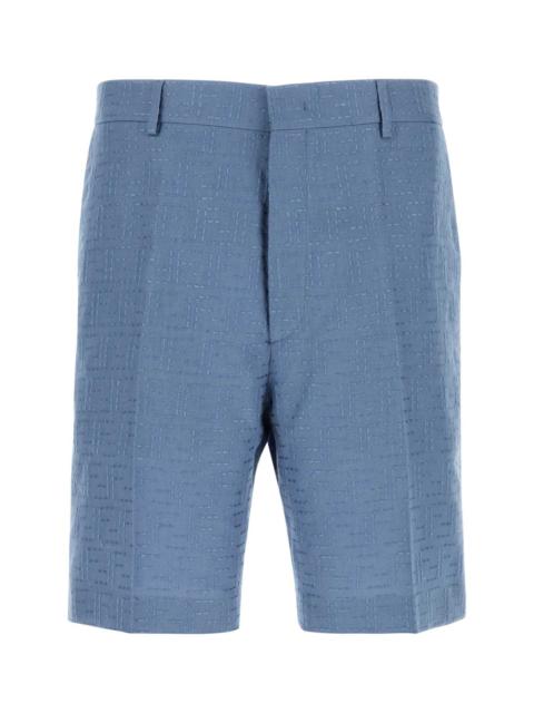 Fendi Men Cerulean Blue Linen Blend Bermuda Shorts