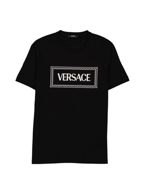 Versace Men's Black Logo-Embroidered Cotton T-Shirt