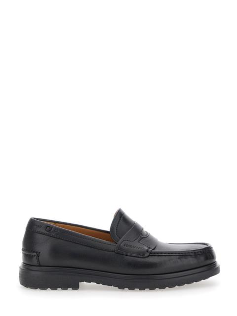 Ferragamo Men 'Besile 2' Black Loafers With Gancini And Cord Detail In Suede Man