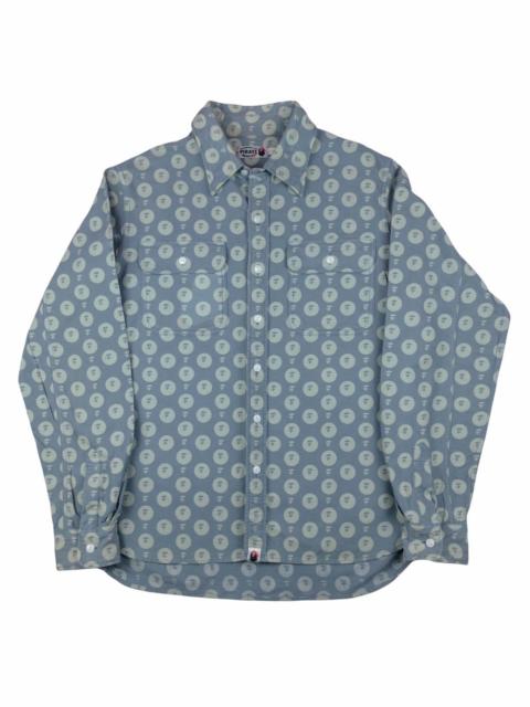 Bathing Ape Full Print Star Shirt Button L Size Blue Colour