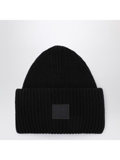 Acne Studios Black Large Face Logo Beanie - Yak Men