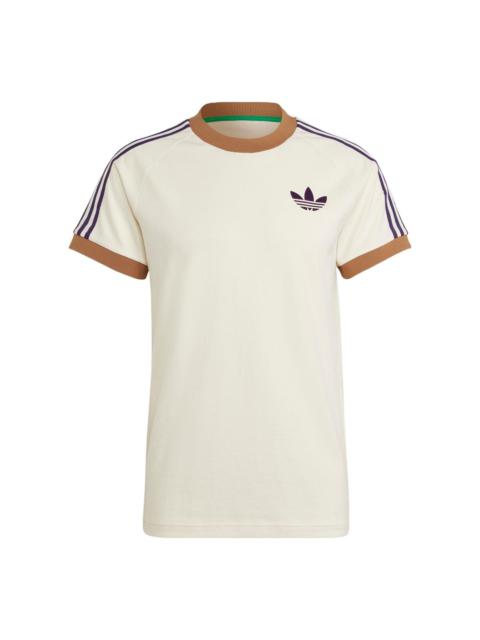 Men's adidas originals Cali Tee Shoulder Stripe Ribbed Round Neck Short Sleeve Milky White T-Shirt I
