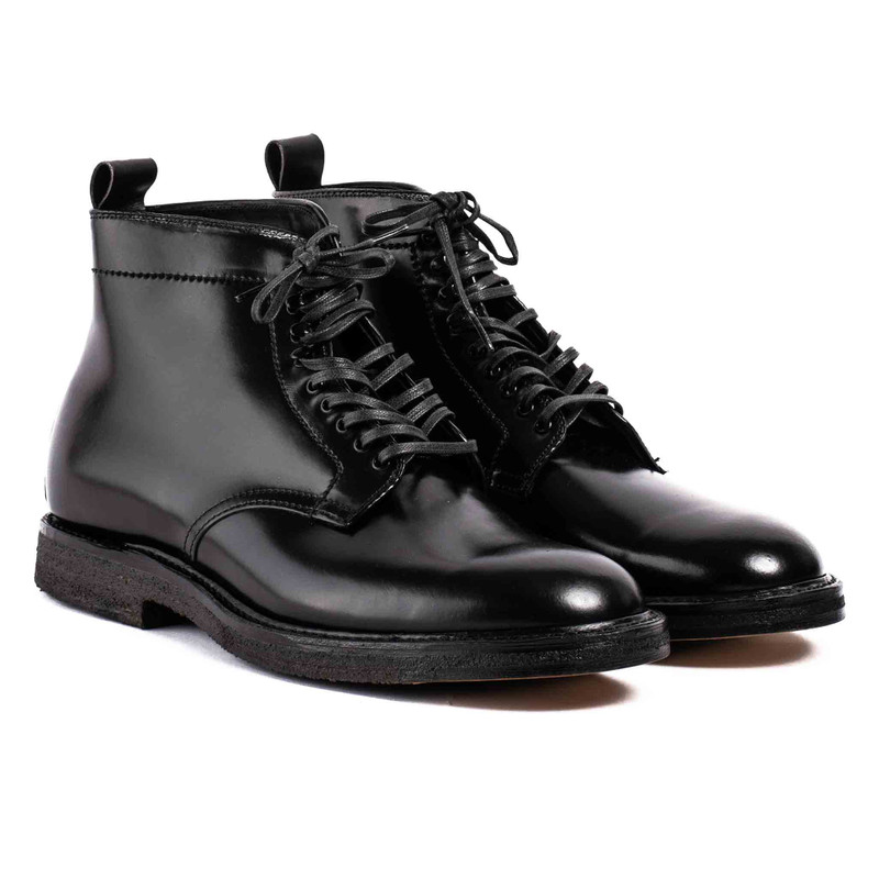 Black Cordovan Plain Toe Boot with Crepe Sole