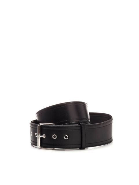 Alexander Mcqueen Men 'Twin Skull' Black Belt With Logo Detail On The Buckle In Leather Man