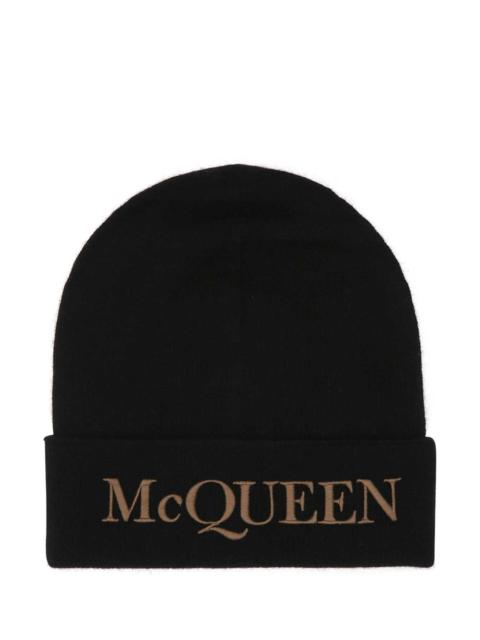 Alexander Mcqueen Men Black Cashmere Beanie Hat