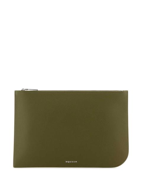 Alexander Mcqueen Men Olive Green Leather Large Sling Pouch