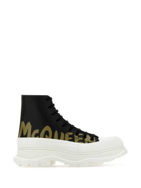 Alexander Mcqueen Men Black Leather Tread Slick Sneakers