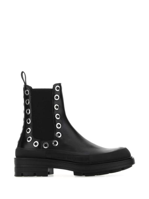 Alexander Mcqueen Men Black Leather Ankle Boots