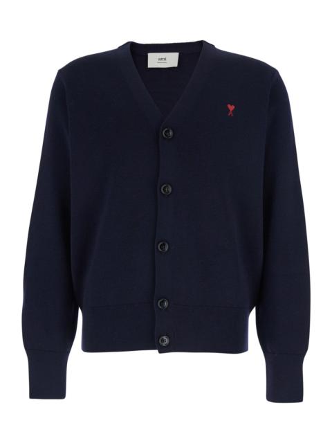 Ami Paris Men Blue Cardigan With V Neck And Adc Embroidery On The Front In Wool Blend Man