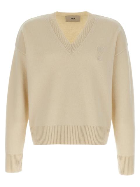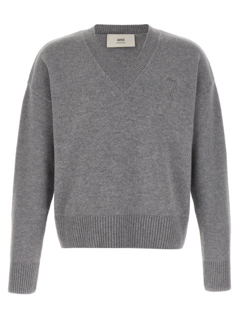 Ami Paris Gray Ami De Coeur Sweater In Wool And Silk Men