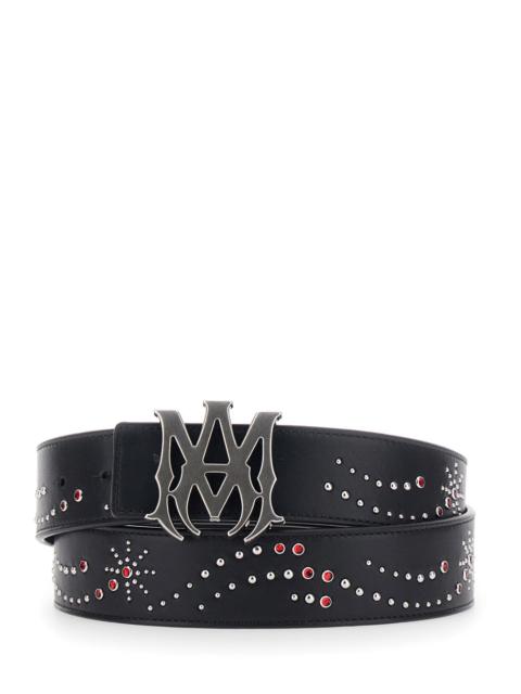Amiri Men Black Belt With Front Logo Buckle Closure And All-Over Stud Embellishments In Leather Man