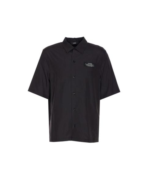 Amiri Men Black Polo Shirt With Classic Collar And Logo Lettering Embroidery On The Front In Cotton
