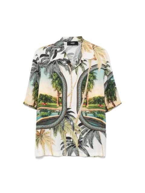 Amiri Men's Blue Dragon Printed Short-Sleeved Bowling Shirt