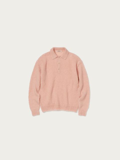 Brushed Super Kid Mohair Knit Polo - Pink Beige