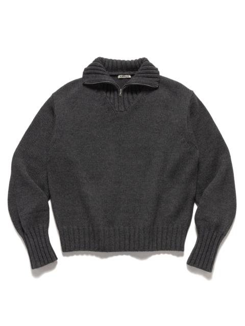 Wool Soft Cord Knit Half Zip P/O Top Charcoal