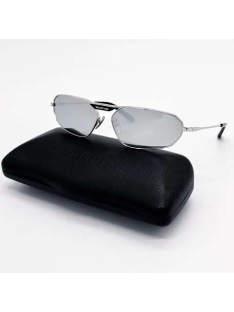 NEW Balenciaga BB0003S 002 White Silver Grey Mirrored Unisex Sunglasses