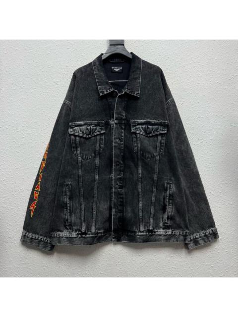 Balenciaga Flame Logo Distressed Washed Denim Jacket