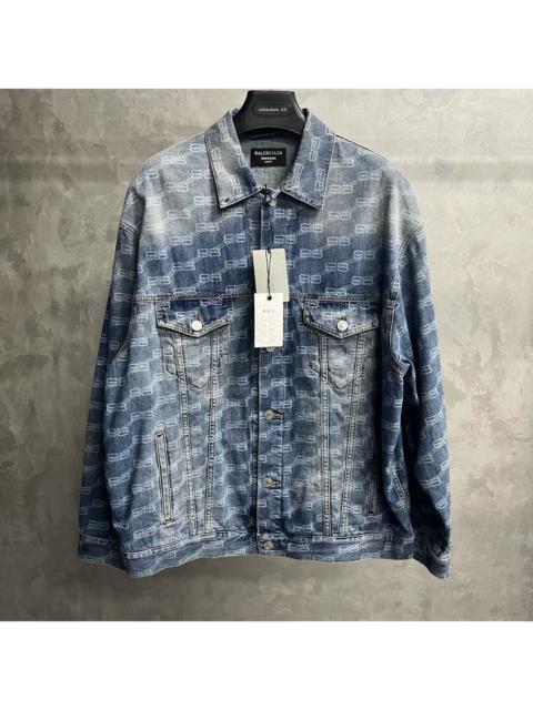 Authentic Balenciaga All Over Logo Printed Denim Jacket