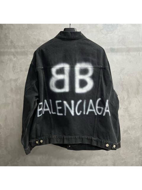 Balenciaga Black Washed Graffiti Logo Denim Jacket