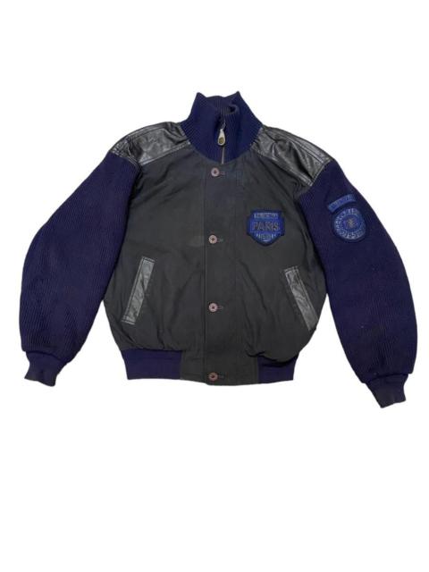 Balenciaga colorblocked letter logo print hooded sweatshirt leather jacket