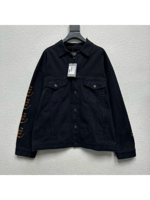 Balenciaga Neckline Lettering Embroidery Denim Jacket