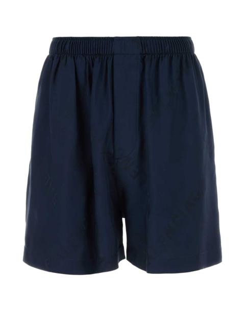 Balenciaga Men Navy Blue Satin Bermuda Shorts