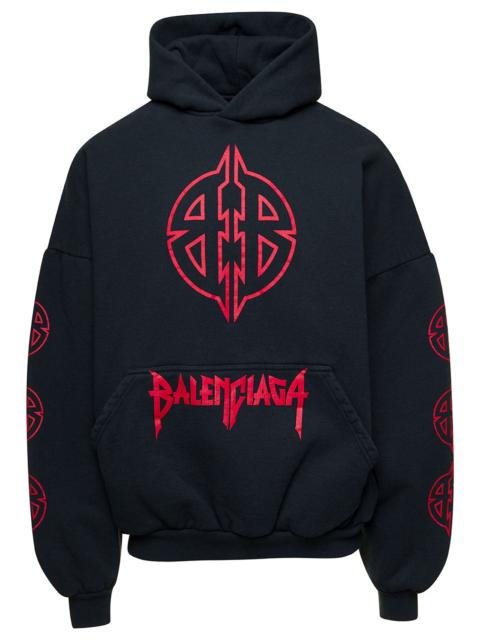 Balenciaga Men Black Hoodie With Maxi Logo Print On Front And Rear In Cotton Stretch Man