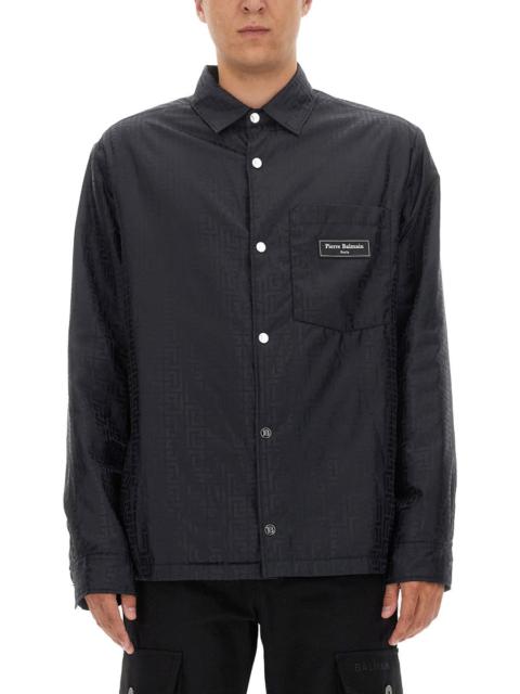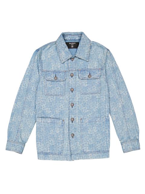 Balmain PB Logo Monogram Pattern Denim Jacket