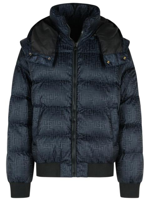 Balmain Short Nylon Jacquard Down Jacket With Black Monogram Men