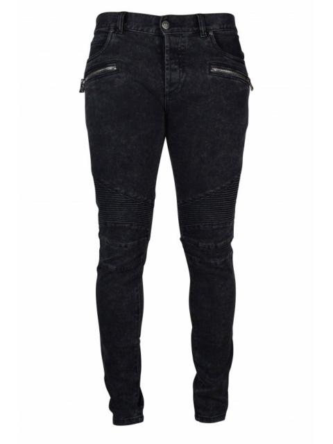 Balmain - Bleached Acid Wash Thunder Effect Biker Jeans