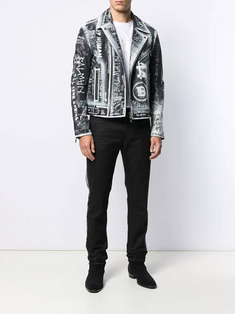 Loose-fit denim jeans with a biker print