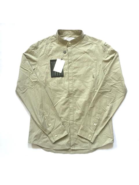 Tan Band Collar Metal Logo Shirt NWT