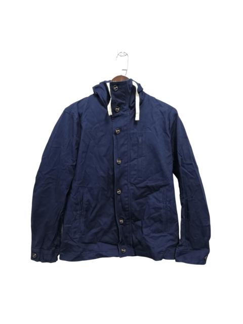 Vintage Beams Blue Hooded Zipper Mens Jacket