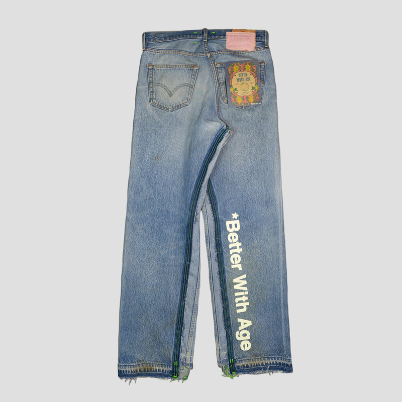 Explore the unique and environmentally conscious offerings of Better With Age men's jeans, where sustainable fashion meets bold style. Each pair is thoughtfully crafted from vintage materials, reflecting the brand's commitment to reducing waste while delivering standout looks. With eye-catching patchwork designs and vibrant hues, these jeans not only celebrate individuality but also tell a story of creativity and repurposing. Perfect for the modern man who values both fashion and sustainability, our collection of Better With Age jeans is sure to elevate your wardrobe with character and flair. Shop now to discover these one-of-a-kind pieces, updated regularly to bring you the latest in men’s designer denim.