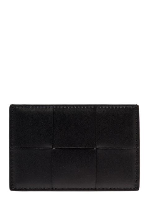 Bottega Veneta Men 'Casette' Black Card-Holder With Embossed Logo And Intreccio Motif In Smooth Leat
