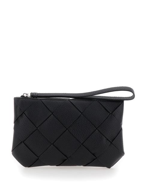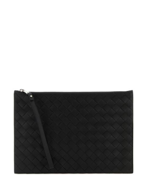 Bottega Veneta Men Black Medium Clutch With Intreccio Motif In Grained Leather Man