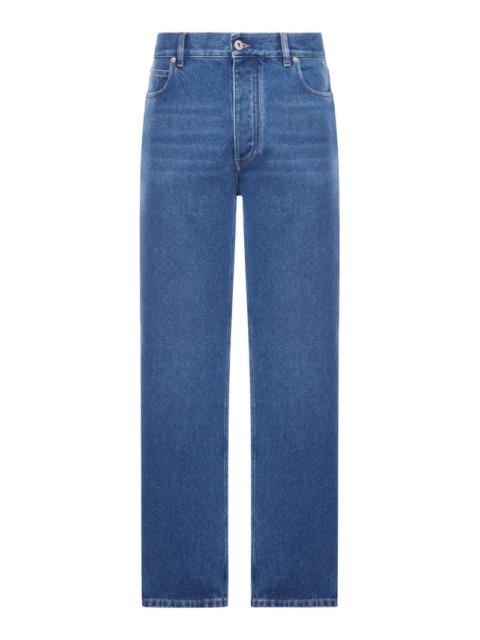 Bottega Veneta Men Blue Straight Jeans With Logo Patch In Denim Man