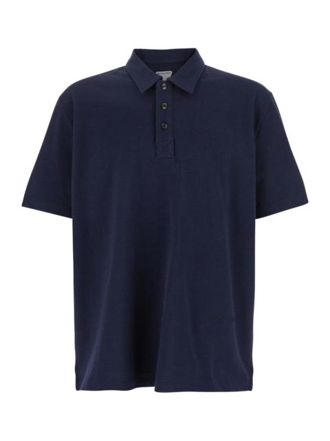 Bottega Veneta Men Blue Polo With Classic Collar And Embroidered Logo On The Front In Tone On Tone C